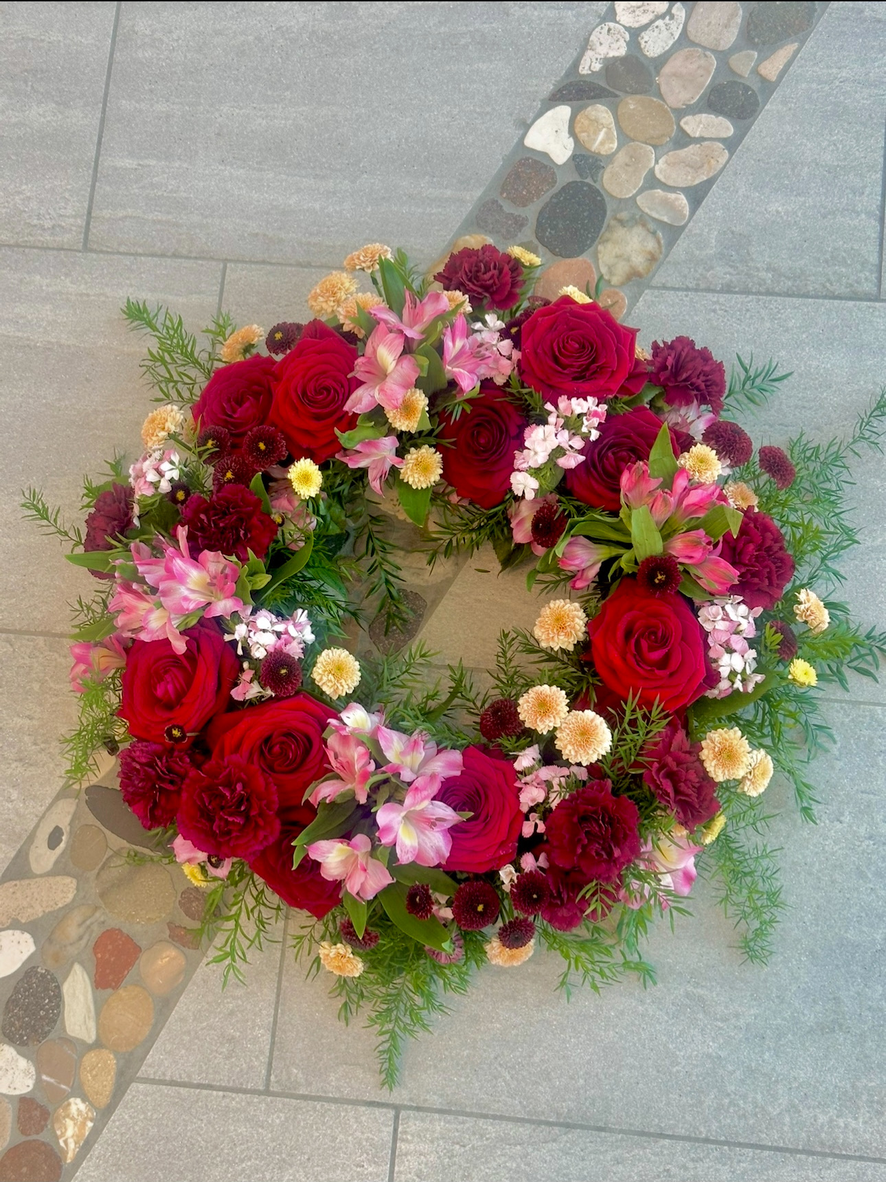 Vacker rundbunden krans, ca 40 cm i diameter
